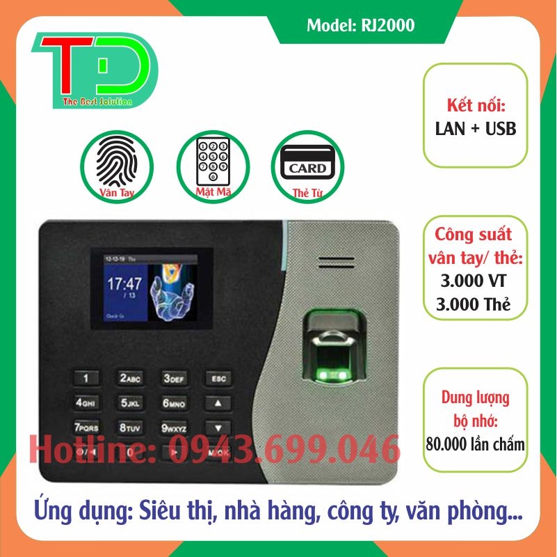 Ronald Jack 2000 là dòng máy chấm công phổ biến cho các doanh nghiệp vừa và nhỏ tại Việt Nam. Máy hỗ trợ 2 hình thức chấm công chính: vân tay và mật mã, giúp tăng tính minh bạch và giảm rủi ro chấm công hộ.