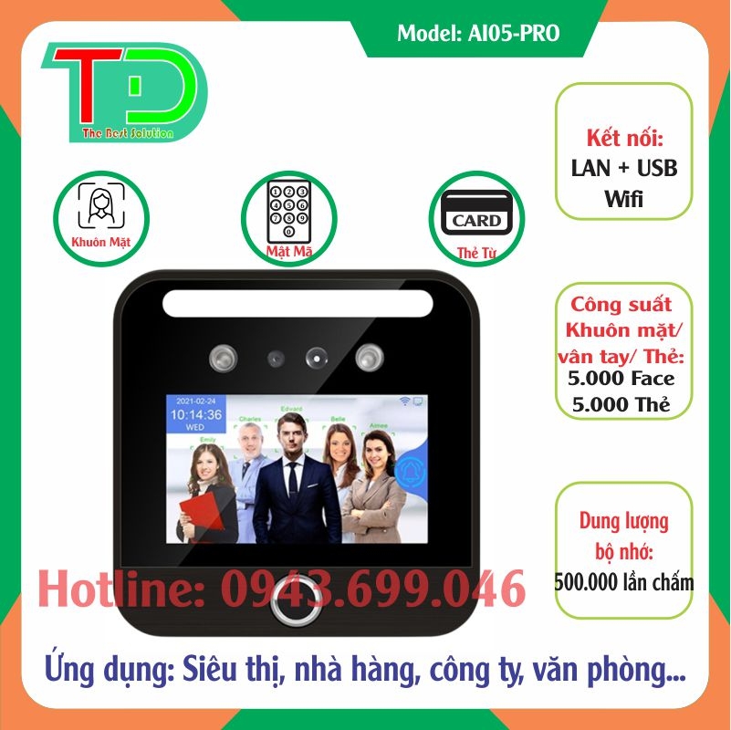 Bạn đang tìm một máy chấm công thông minh, đa năng và giao diện hiện đại? AI05Pro là lựa chọn lý tưởng cho doanh nghiệp hiện đại. Để được tư vấn nhanh và báo giá tốt, vui lòng liên hệ: