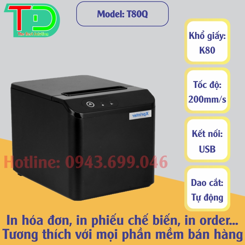 Xprinter T80Q là dòng máy in hóa đơn được nhiều shop bán lẻ và cửa hàng tạp hóa lựa chọn nhờ hiệu năng ổn định, thiết kế chắc chắn và giá cả hợp lý. Máy đáp ứng tốt nhu cầu in bill cơ bản tại quầy thanh toán.
