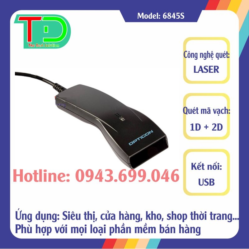 Máy Đọc Mã Vạch Opticon 6845S – 1D Có Dây, Bền, Quét Nhanh Cho Kho Và Bán Lẻ