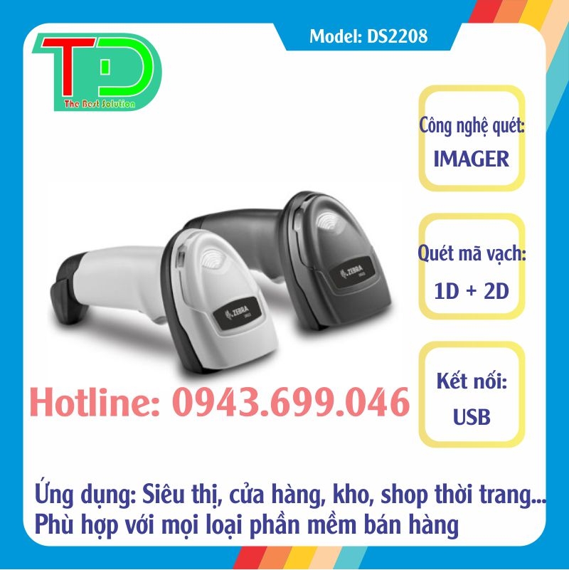 Máy Đọc Mã Vạch Zebra DS2208 – Quét Mã 2D Có Dây, Hiệu Quả Cho Bán Lẻ & Thanh Toán