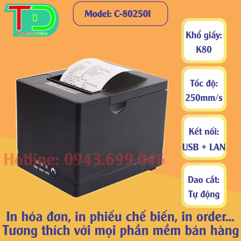 Gprinter C-8025I là dòng máy in hóa đơn khổ 80mm với tốc độ in lên đến 230mm/s, thiết kế đẹp, gọn gàng và độ tương thích cao. Máy phù hợp triển khai tại nhà hàng, quán café, quán trà sữa, khách sạn nhờ khả năng vận hành liên tục và kết nối linh hoạt.