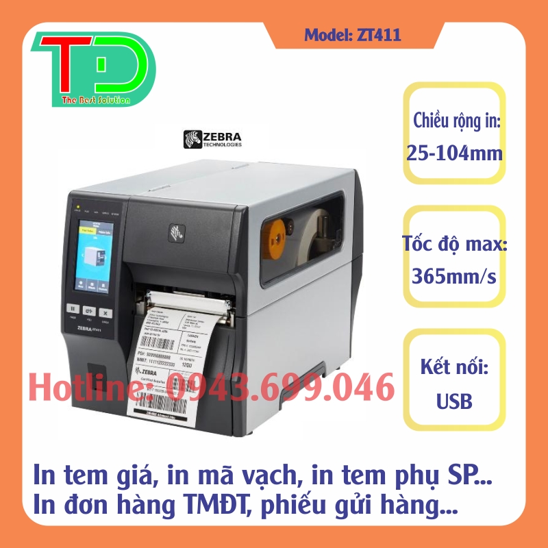 ZT411 là dòng máy hướng đến doanh nghiệp mong muốn sự linh hoạt, tốc độ và khả năng mở rộng cao. Đây là thiết bị lý tưởng nếu bạn cần in tem nhiều ca/ngày và đang dùng phần mềm quản lý chuyên sâu.